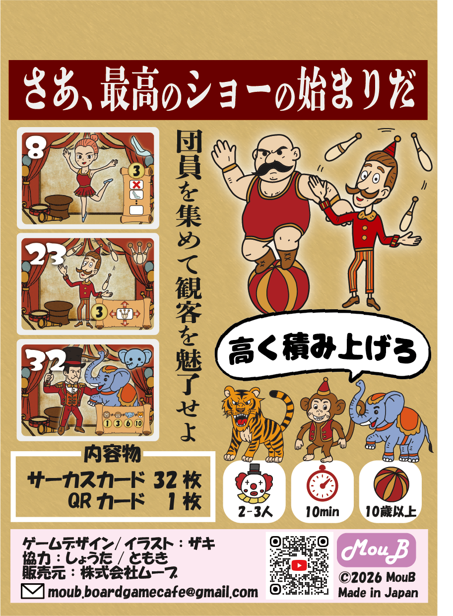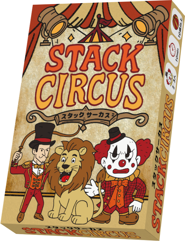 サーカス団員を集め、カードを塔のように積み上げて得点を競うドラフト×配置カードゲームです。